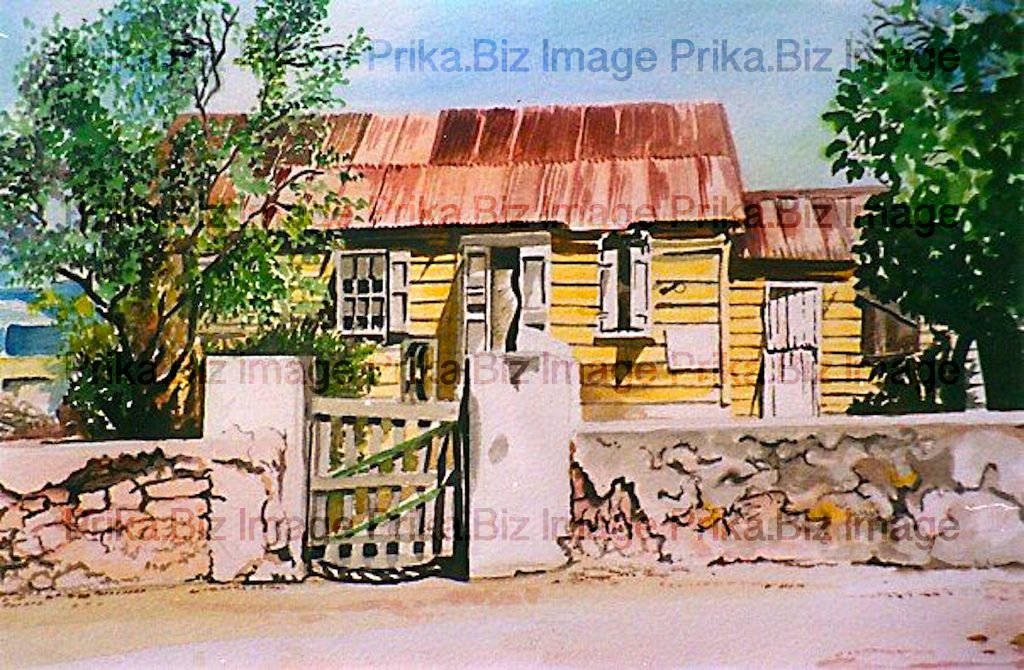 While living and working in the Turks and Caicos I was attracted to its unique architecture. Many of the smaller residential properties built of wood were an expression of the country’s colonial past. This little wooden cottage is in Grand Turk the capital of the Islands and might be over 100 years old at the time this picture was painted.